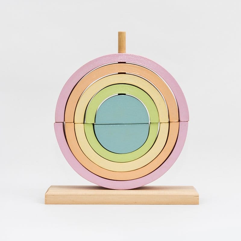 Su madera, imperfecta y natural, les da información sensorial muy valiosa. Sus piezas les ayudan a diferenciar formas y colores. Manipulándolo ganan destreza y coordinación. A través de él van comprendiendo conceptos complejos como el equilibrio, la simetría y la resistencia. Les abre la puerta de par en par al juego simbólico, a construir escenarios e imitar situaciones de la vida real.