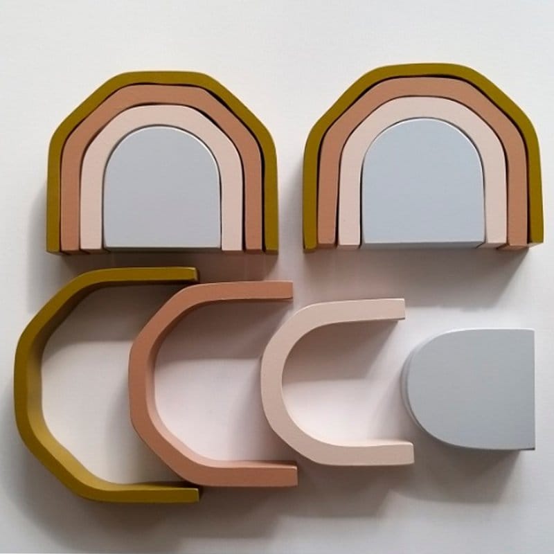 Arco iris de 4 piezas, en tonos verdosos que nos remontan a las antiguas construcciones de la gran Roma