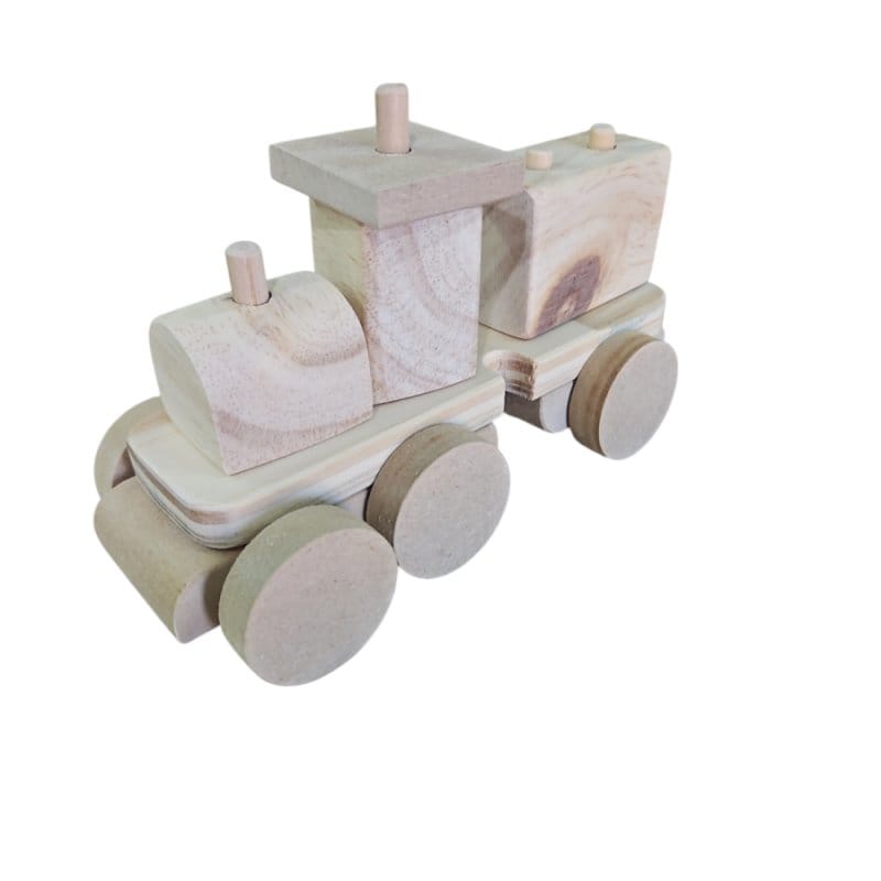 JUEGO DE MADERA NATURAL SIN PINTURAS, COMPUESTO DE BLOQUES ENCAJABLES, DISEÑADO PARA QUE LOS NIÑOS NO SOLO CONSTRUYAN FIGURAS, SINO TAMBIEN PERSONALICEN LAS PIEZAS CON SUS PROPIAS PINTURAS, FOMENTANDO LA CREATIVIDAD Y LA EXPRESION ARTISTICA.