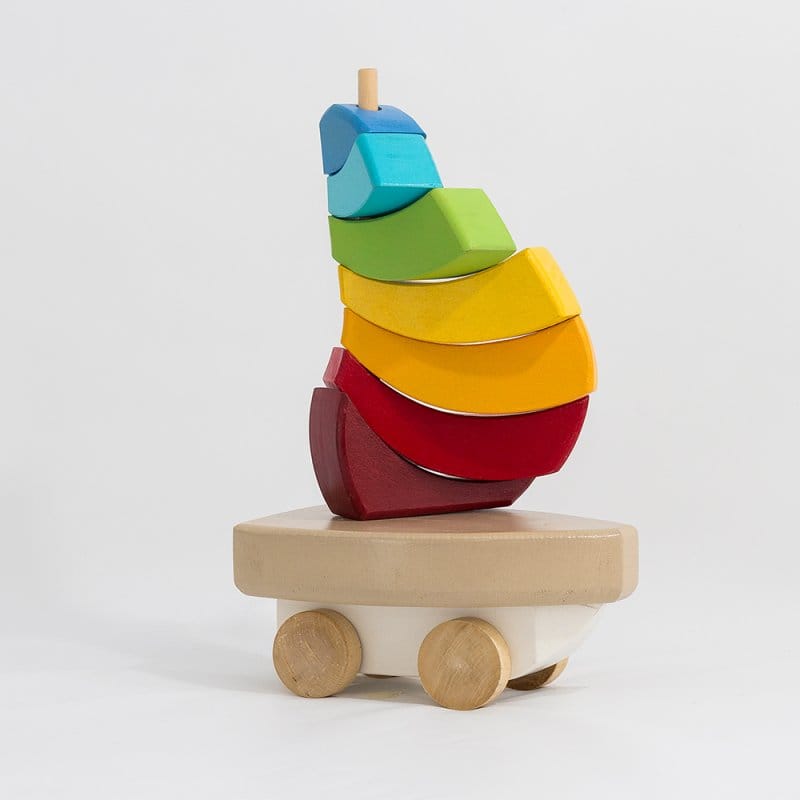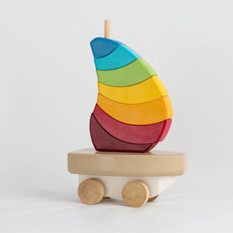 Es ideal para acompañar al niño en la primera infancia, desarrollando la creatividad y fomentando el juego simbólico a partir de la creación de diferentes figuras y escenarios con los bloques (se pueden formar otros veleros más pequeños, muebles para muñecos, sendas para autitos y mucho más). Invita al desplazamiento a través del gateo que permite descargar peso en las manos y asi fortalecerlas y prepararlas para experimentar distintas funciones manuales.